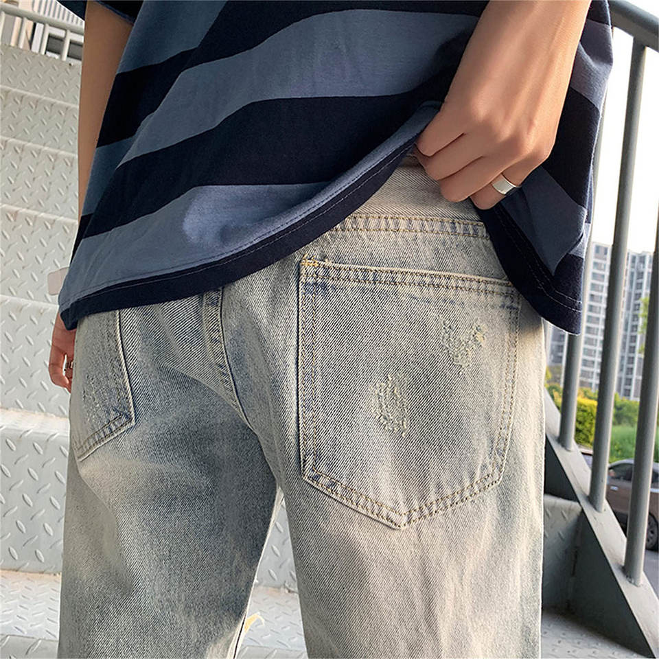 กางเกงยีนส์ขาสั้นสไตล์วินเทจลำลองสำหรับฤดูร้อน แฟชั่นกางเกงขาสั้นทรงหลวมสำหรับผู้ชาย