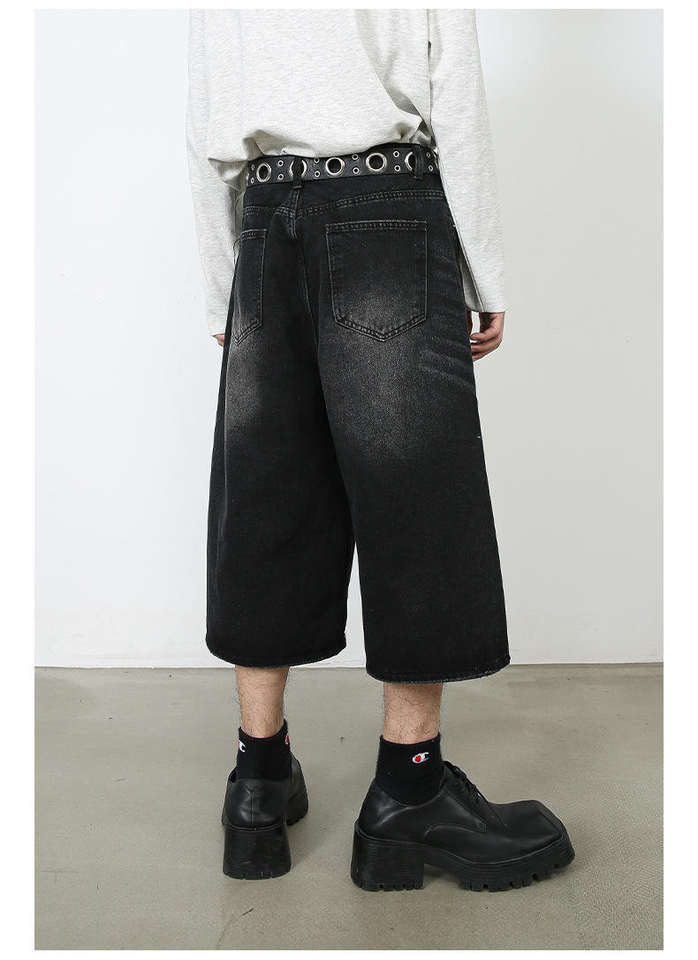 กางเกงขาสั้นสไตล์วินเทจลำลองสำหรับฤดูร้อน กางเกงขาสั้นทำงานทรงหลวม กางเกงยีนส์ขาสั้นแฟชั่นผู้ชายทรงแบ็กกี้