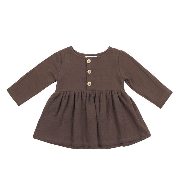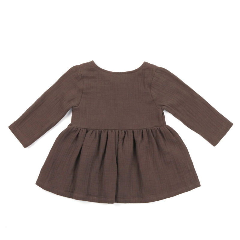 Keywords:Baby Girl Muslin Dress Solid Long Sleeve Dress Girls Summer Dress