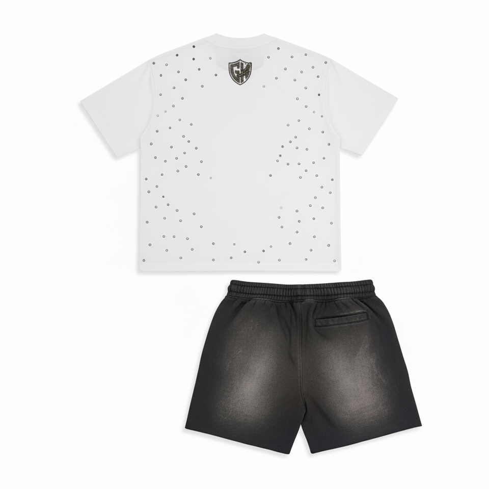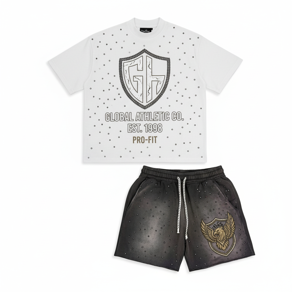 ชุดวอร์มฤดูร้อนแบบกำหนดเอง พิมพ์ลาย DTF ชุดเสื้อผ้าสเวตเชิ้ตแขนสั้น ชุดเซ็ต 2 ชิ้น เสื้อยืดแขนสั้นผู้ชายและกางเกงขาสั้น