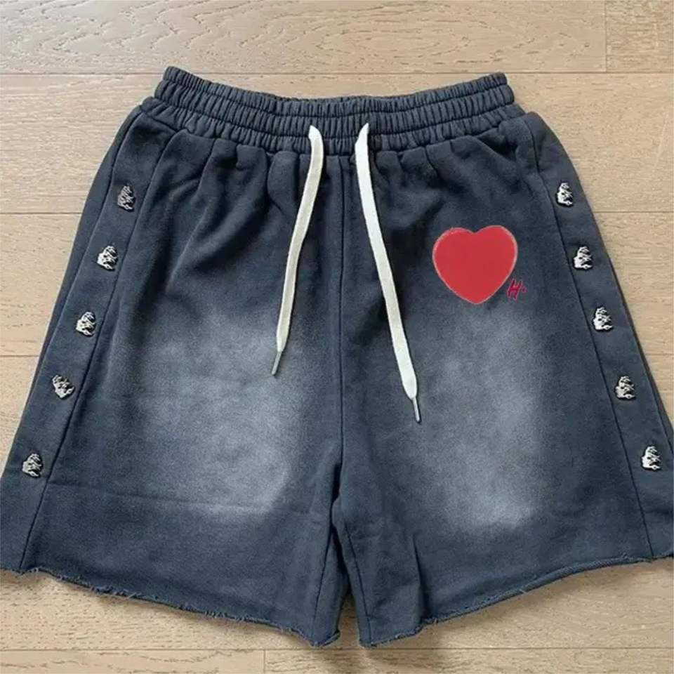 กางเกงขาสั้นสำหรับวิ่งออกกำลังกายสีพื้นสำหรับผู้ชายกางเกงขาสั้นแนวสตรีทแบบมีกระดุมด้านข้าง