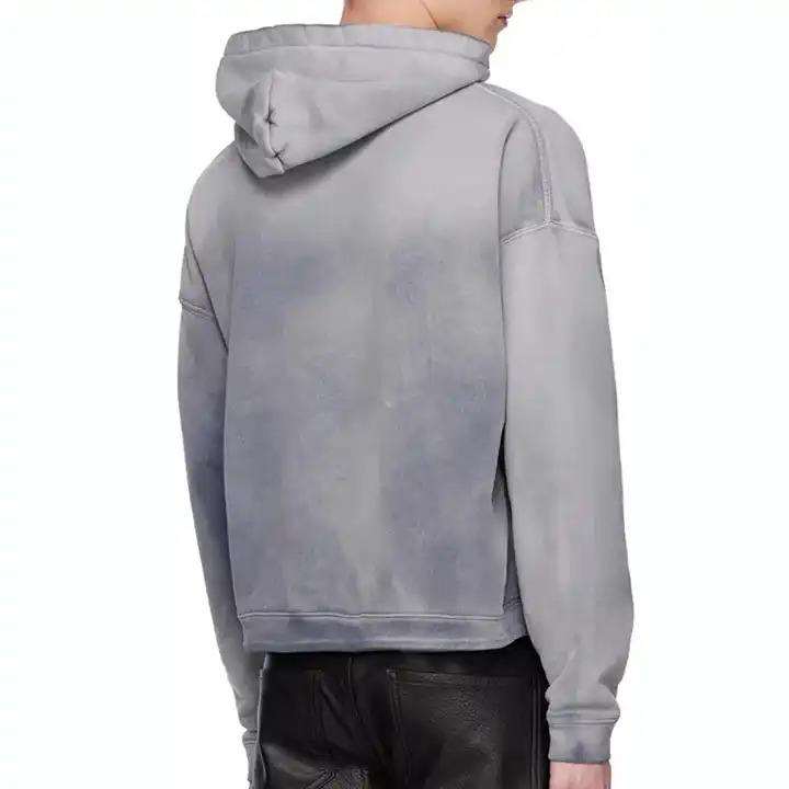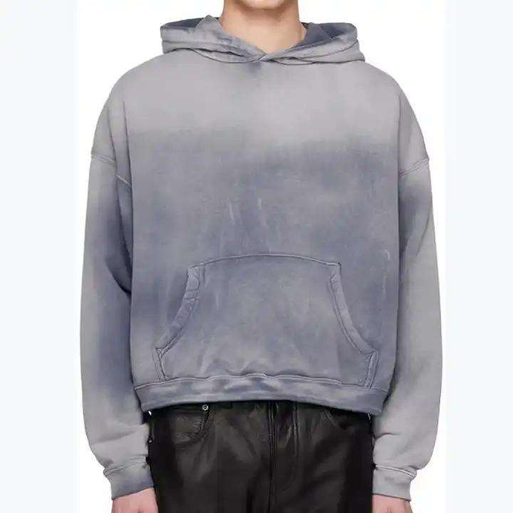 เสื้อฮู้ดดี้ผ้าคอตตอน 100% หนานุ่ม สไตล์วินเทจ ฟอกสีซีดแบบย้อมกรด สำหรับผู้ชาย