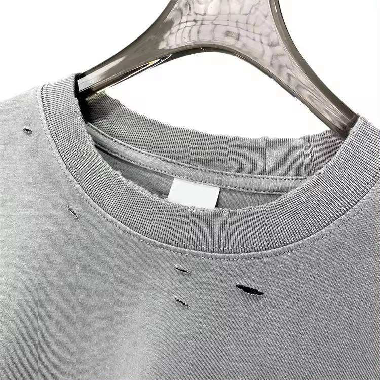 เสื้อยืดผ้าฝ้าย100% สีดำแขนสั้นทรงหลวมเสื้อฮิปฮอปซักแบบกรดออกแบบโลโก้ได้ตามต้องการ