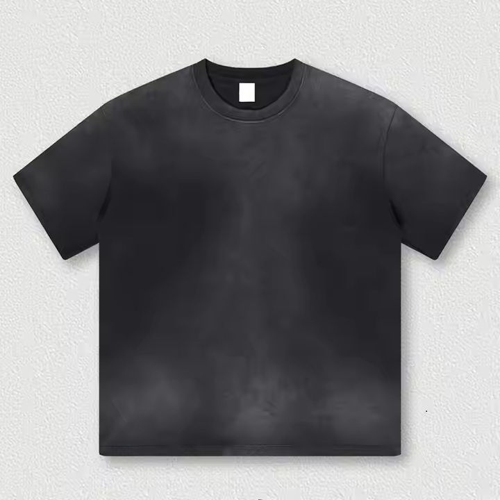 เสื้อยืดผ้าฝ้าย100% สีดำสำหรับผู้ชายเสื้อยืดแขนสั้นทรงหลวมพิมพ์ลายเสื้อยืดซักความเป็นกรดแบบฮิปฮอประบายติดโลโก้ได้ตามต้องการ