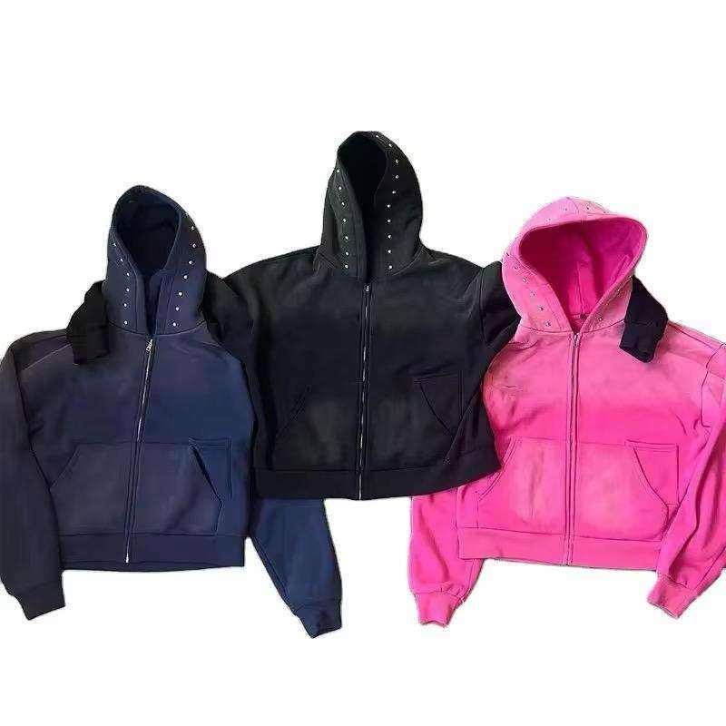 เสื้อฮู้ดซิปแบบวินเทจฟอกสีสไตล์ย้อนยุค ผ้าฝ้ายเฟรนช์เทอร์รี่ ซิปยาวเต็มตัว สำหรับผู้ชาย