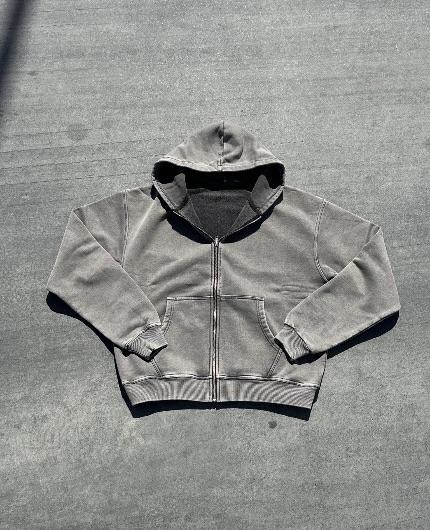เสื้อฮู้ดดี้ผู้ชายทรงโอเวอร์ไซส์ ผ้าคอตตอน 100% ซันเฟดแบบวินเทจ ล้างสีแบบวินเทจ