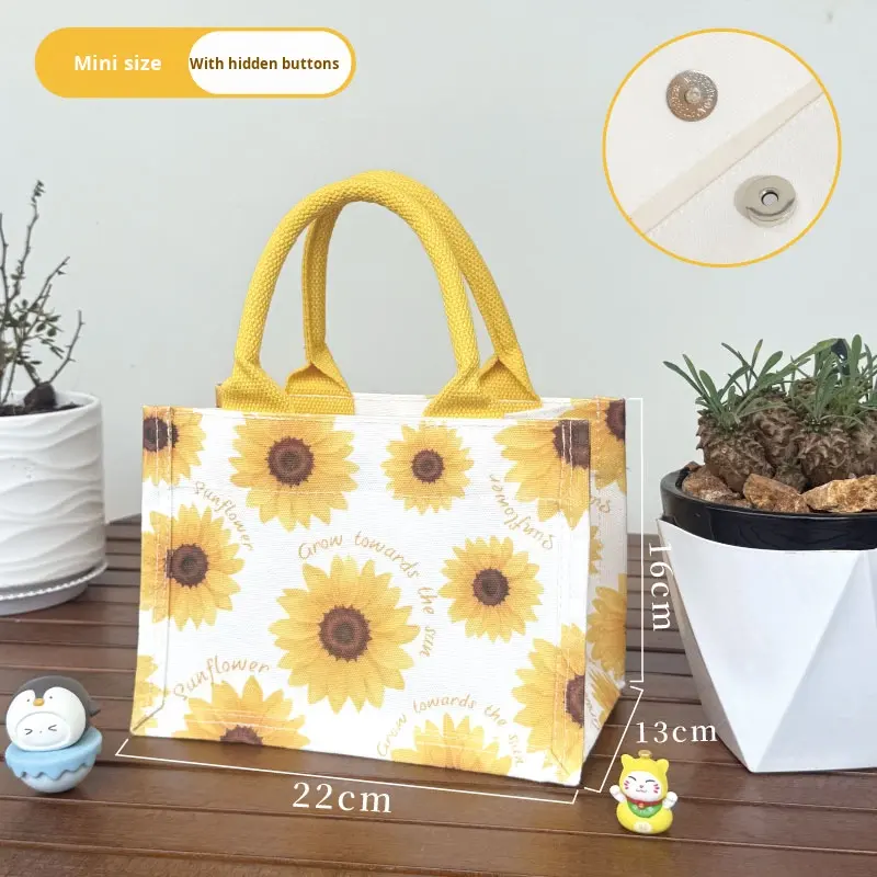 กระเป๋าผ้าแคนวาสลายดอกทานตะวันสั่งทำพิเศษ ทนทาน น้ำหนักเบา มีสายสะพายโซ่ จุของได้เยอะ พับเก็บได้ แฟชั่นสำหรับออกงาน กระเป๋าถือ ของขวัญสั่งทำพิเศษ
