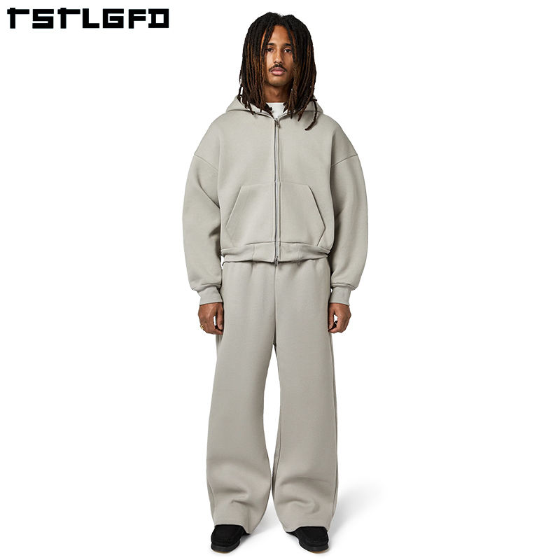 ชุดวอร์มผ้าฝ้ายทรงถุงมีฮู้ดและกางเกงวอร์มมีซิปสำหรับผู้ชาย