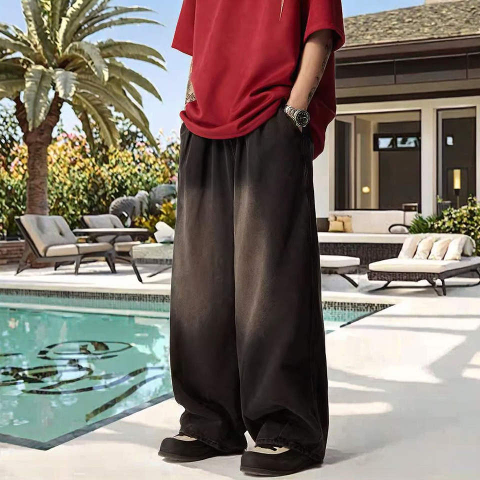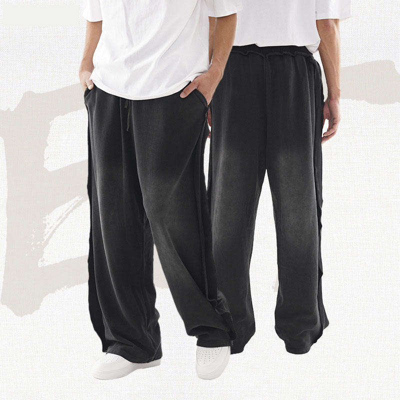 กางเกงวอร์มทรงจ็อกเกอร์ขายาวทรงหลวมผ้าฝ้ายเฟรนช์เทอร์รี่ทรงตรงขาบานสำหรับผู้ชายและผู้หญิง