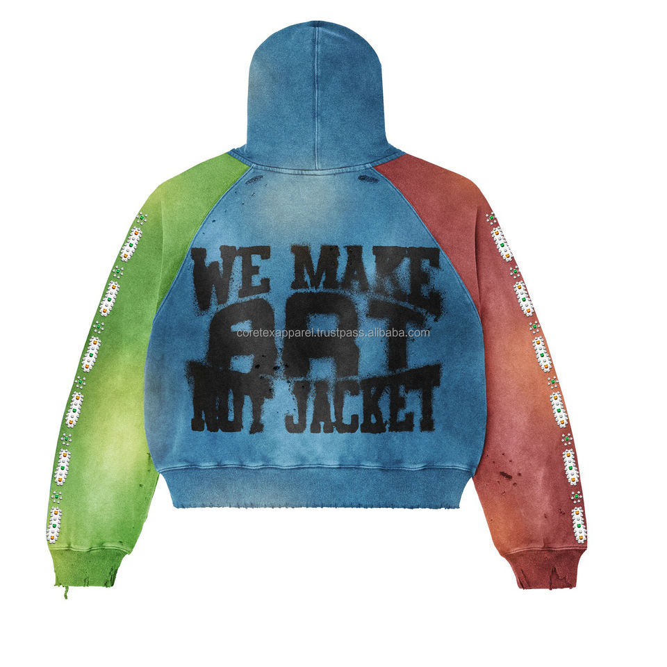 ผู้ผลิตชุดวอร์มแบบกำหนดเอง ชุดฮู้ดดี้และกางเกงวอร์มแบบฟอกสีพร้อมลายปะ ชุดวอร์มทรงขาบานสำหรับผู้ชาย