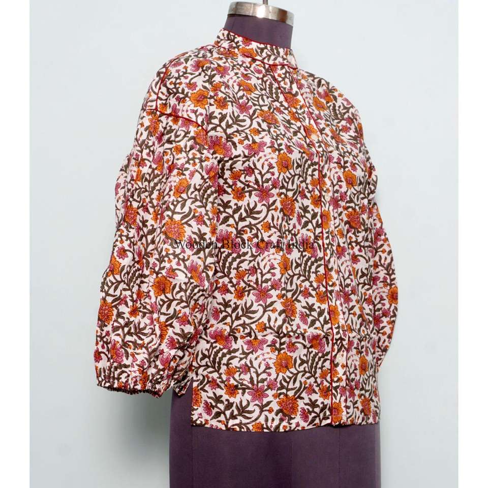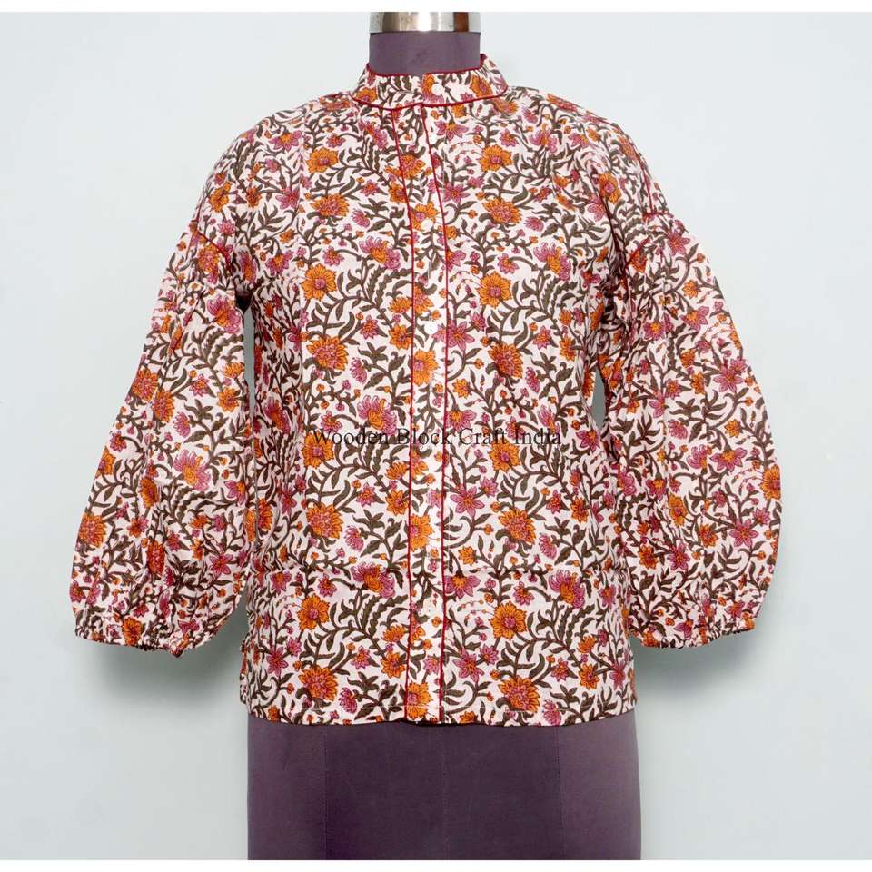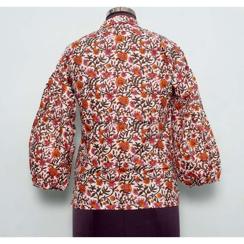 Custom Sweet Vintage Floral Indian Top High Quality Women's Korean Style Outwear 100% Cotton Eco-Friendly puff full sleeve