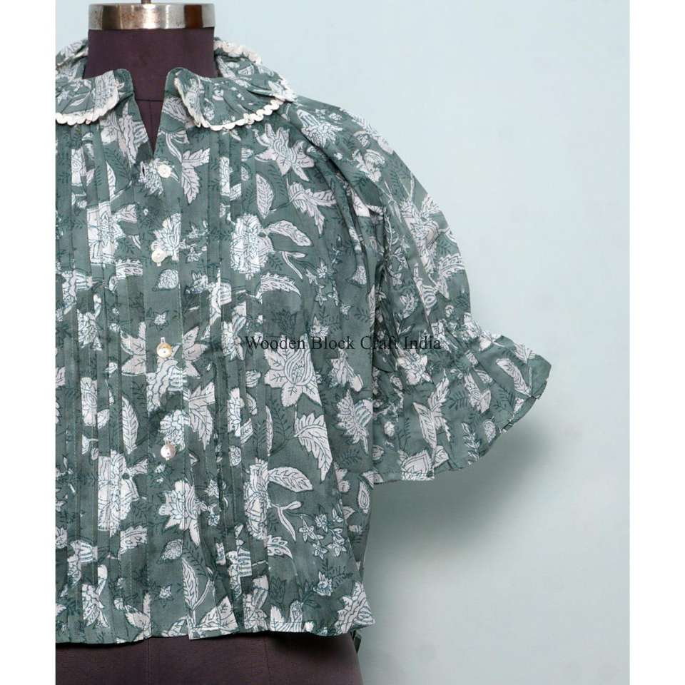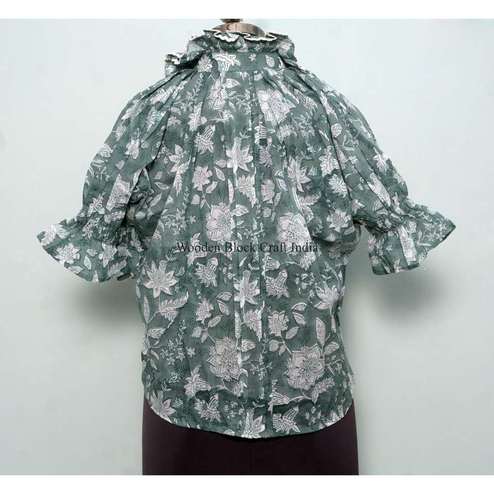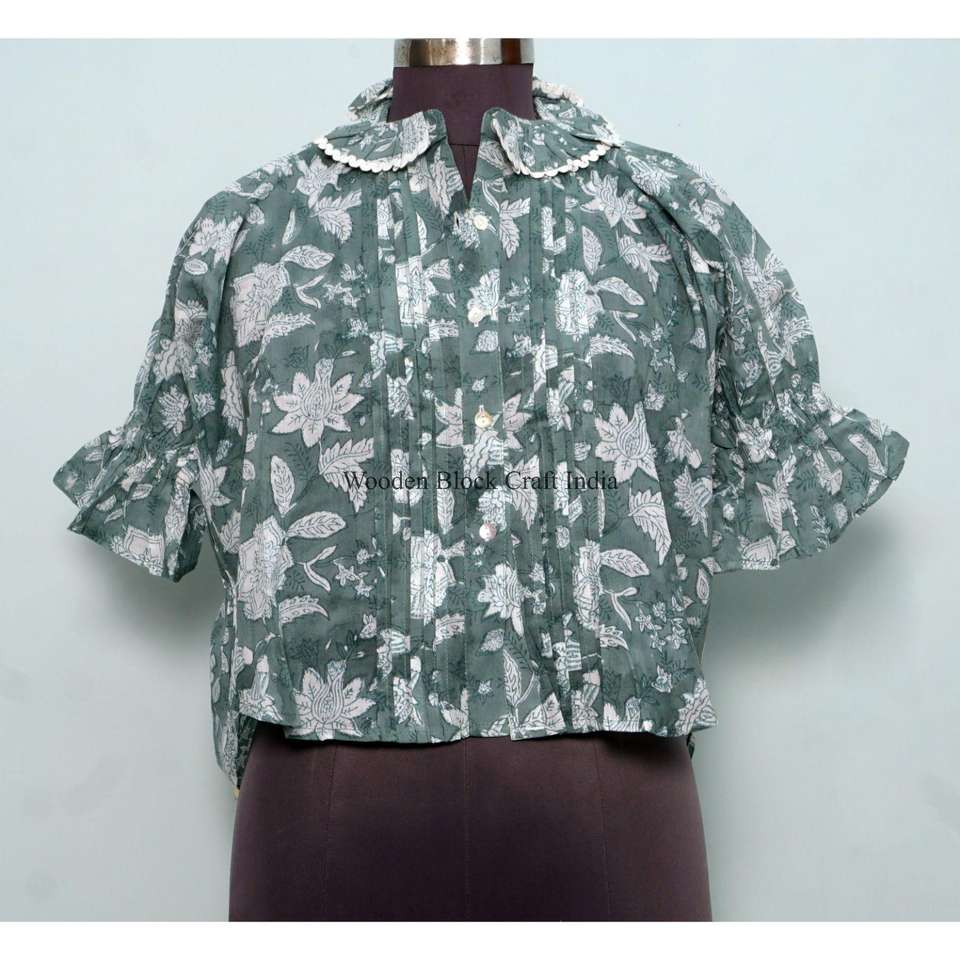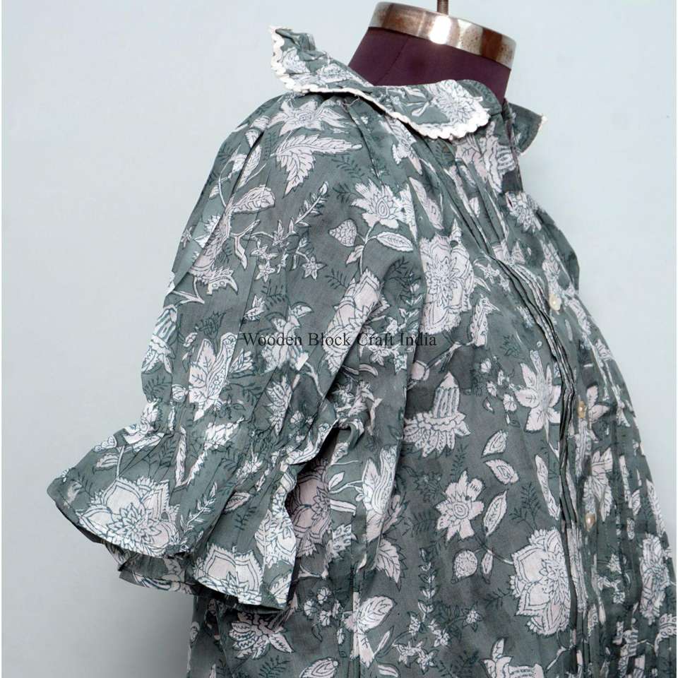 Custom Sweet Vintage Floral Indian Top High Quality Women's Korean Style Outwear Breathable 100% Cotton Eco-Friendly bell sleeve