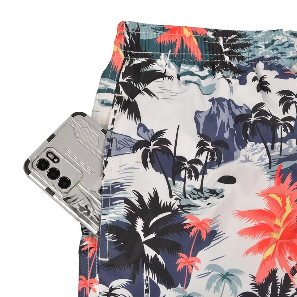 กางเกงขาสั้นว่ายน้ำและลำลองแบบสั่งทำพิเศษ ผลิตจากโพลีเอสเตอร์ 100% ระบายอากาศได้ดี พร้อมลายพิมพ์แบบซับลิเมชั่น ขายออนไลน์ในราคาประหยัด