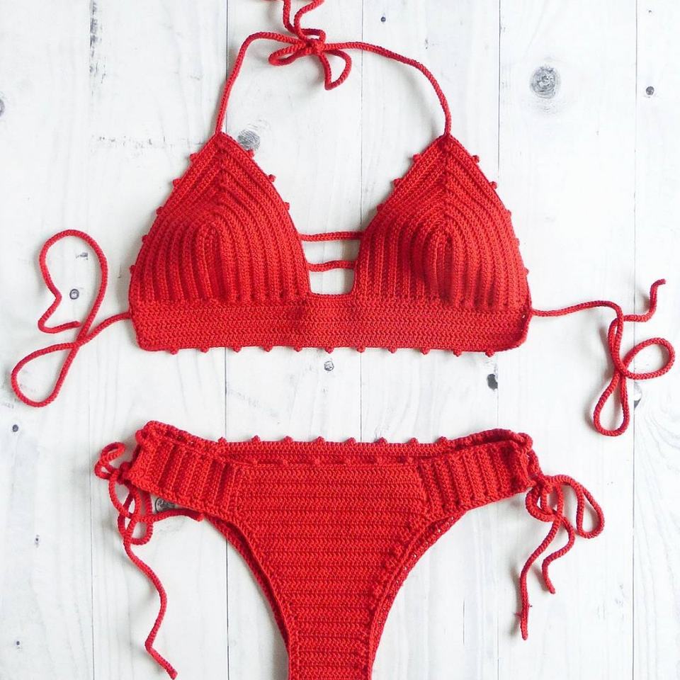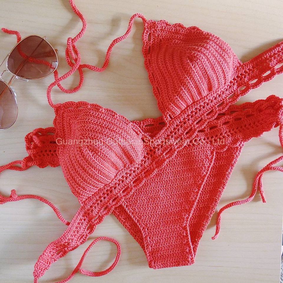 ผู้ผลิตชุดว่ายน้ำแบบกำหนดเอง ชุดว่ายน้ำผู้หญิงถักมือ ชุดสองชิ้น เซ็กซี่ มินิสตริงบิกินี่ ชุดว่ายน้ำชายหาด