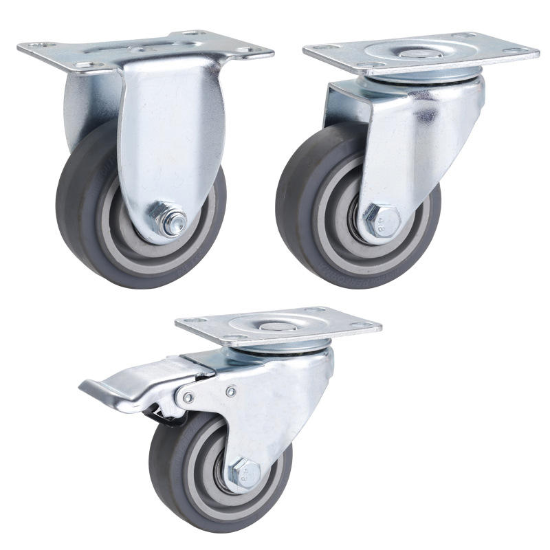 ล้ออเนกประสงค์ขนาด 3 นิ้ว แบบฐานแบน ขนาดกลาง พร้อมแกนหมุน 2 แกน TPR