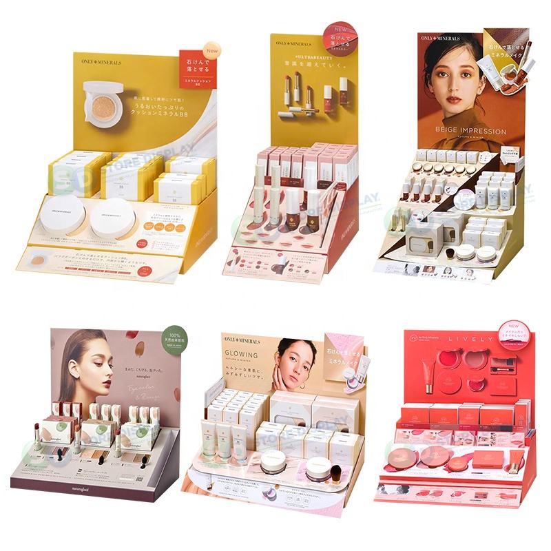 ชั้นวางสินค้าเครื่องสำอางแบบตั้งโต๊ะ ทำจากกระดาษแข็ง สำหรับวางบนเคาน์เตอร์ ชั้นวางแบบหลายชั้น ถาด PDQ กล่องโชว์สินค้าจากกระดาษลูกฟูก