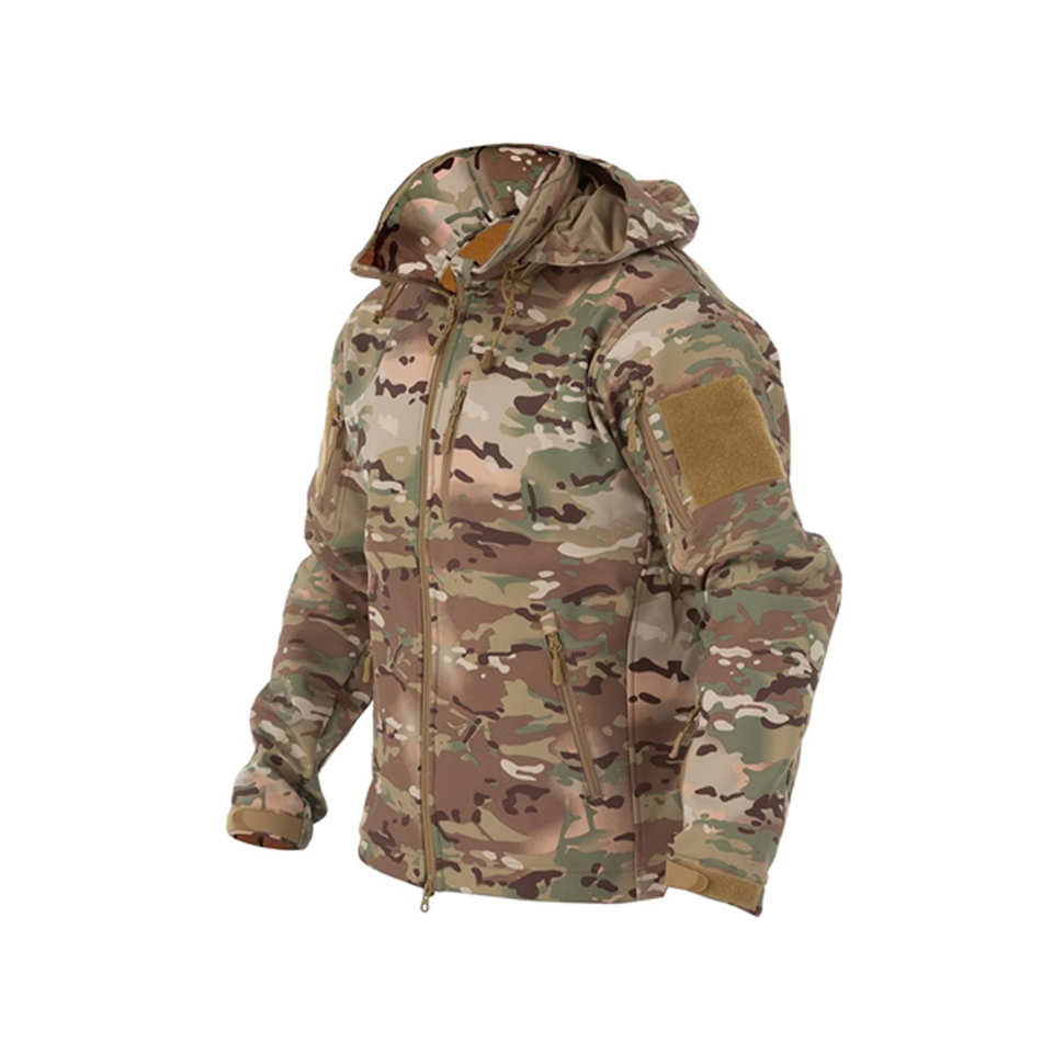 เสื้อแจ็คเก็ตผ้านิ่มยุทธวิธีออกแบบได้ตามต้องการพร้อมโลโก้อุปกรณ์กลางแจ้งที่ทนทานสำหรับการเดินป่าและการผจญภัย