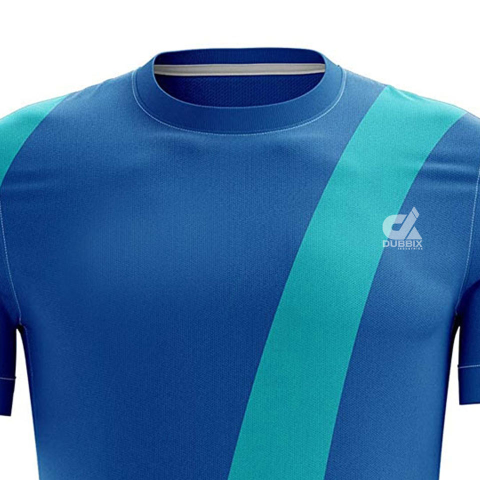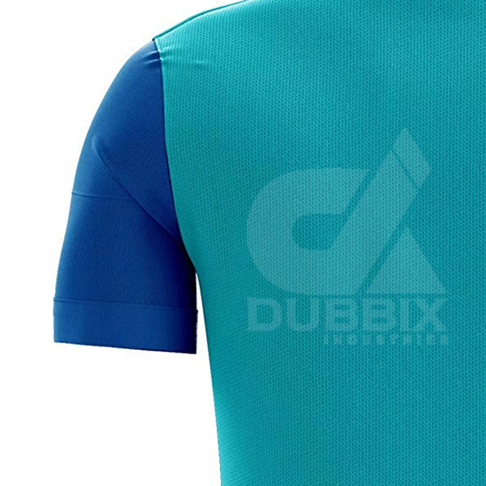 เสื้อกีฬาแขนสั้นสีฟ้าอมเขียวแบบกำหนดเอง ระบายอากาศได้ดี แห้งเร็ว เหมาะสำหรับการฝึกซ้อม ชุดทีม รับผลิตตามแบบ (OEM) ขายส่ง