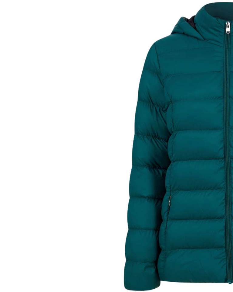 เสื้อแจ็คเก็ตพัฟเฟอร์มีฮู้ดสีเขียวอมฟ้าแบบกำหนดเองสำหรับผู้หญิง ฤดูหนาว บุผ้าโพลีเอสเตอร์อุ่นสบาย สวมใส่สบายๆ สำหรับกิจกรรมกลางแจ้ง ผู้ผลิตแบบ OEM ตามสั่ง