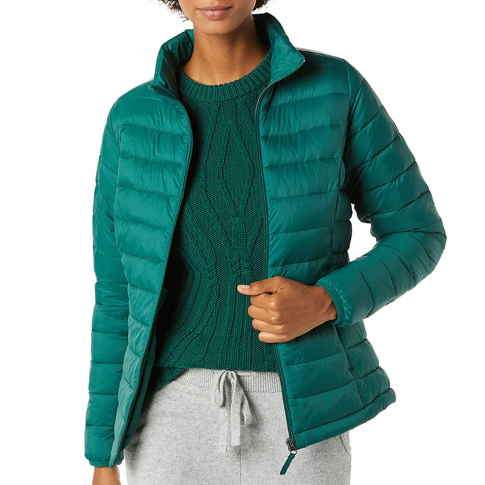 แจ็คเก็ตบุนวมสีอมเขียวสำหรับผู้หญิงแจ็คเก็ตบุนวมสีโอเวอร์ไซส์ผ้าเมมโมรีระบายอากาศได้
