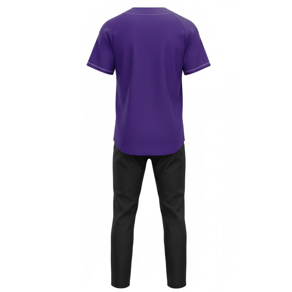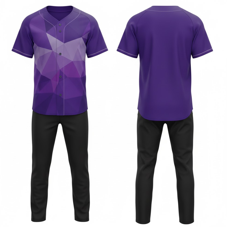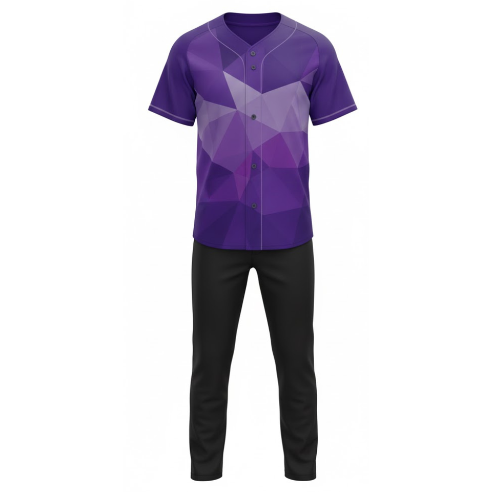 ชุดยูนิฟอร์มเบสบอลทีมแบบกำหนดเอง | เสื้อเจอร์ซีย์กระดุมเต็มตัวลายเรขาคณิตสีม่วงและกางเกงฝึกซ้อม