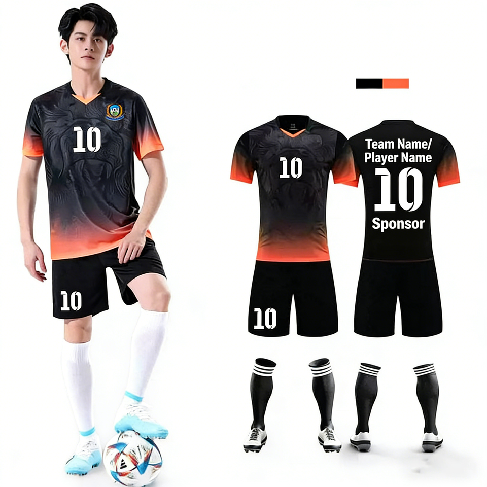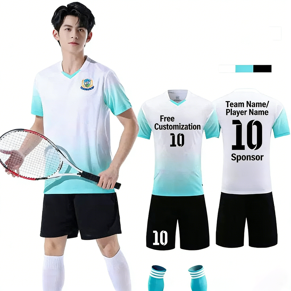 ชุดทีมฟุตบอลแบบกำหนดเอง ชุดแข่งฟุตบอลจีนครบชุด เสื้อฟุตบอลยูนิเซ็กซ์ โพลีเอสเตอร์ 100% ป้องกันแบคทีเรีย คอกลม แขนสั้น ผ้าตาข่าย
