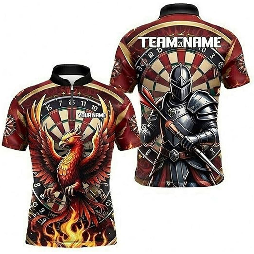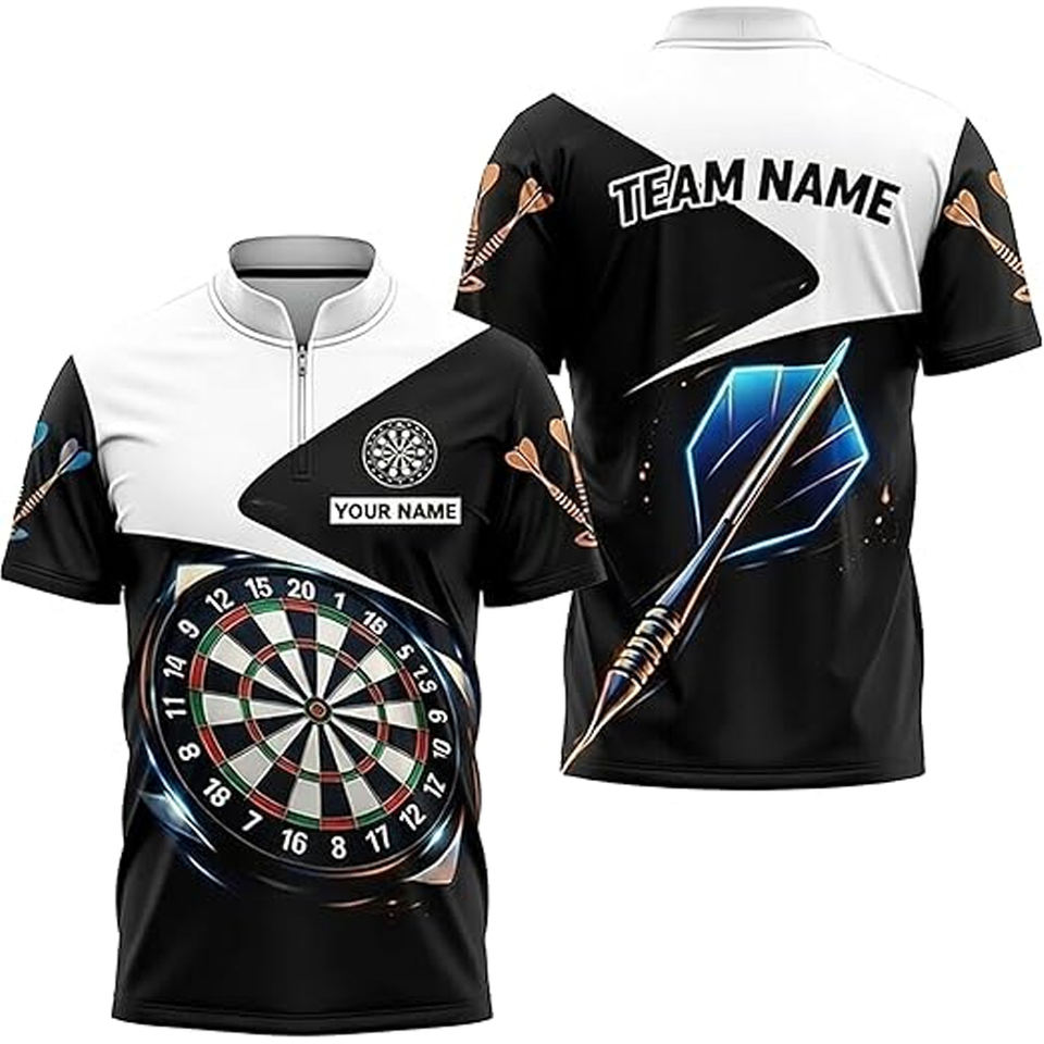 เสื้อทีมดาร์ทส์แบบสั่งทำ พิมพ์ลายแบบซับลิเมชั่น ผ้าโพลีเอสเตอร์ 100% แห้งเร็ว ระบายอากาศได้ดี เสื้อเจอร์ซีย์แบบยูนิเซ็กซ์ พิมพ์โลโก้ ลายพิมพ์ 3 มิติ