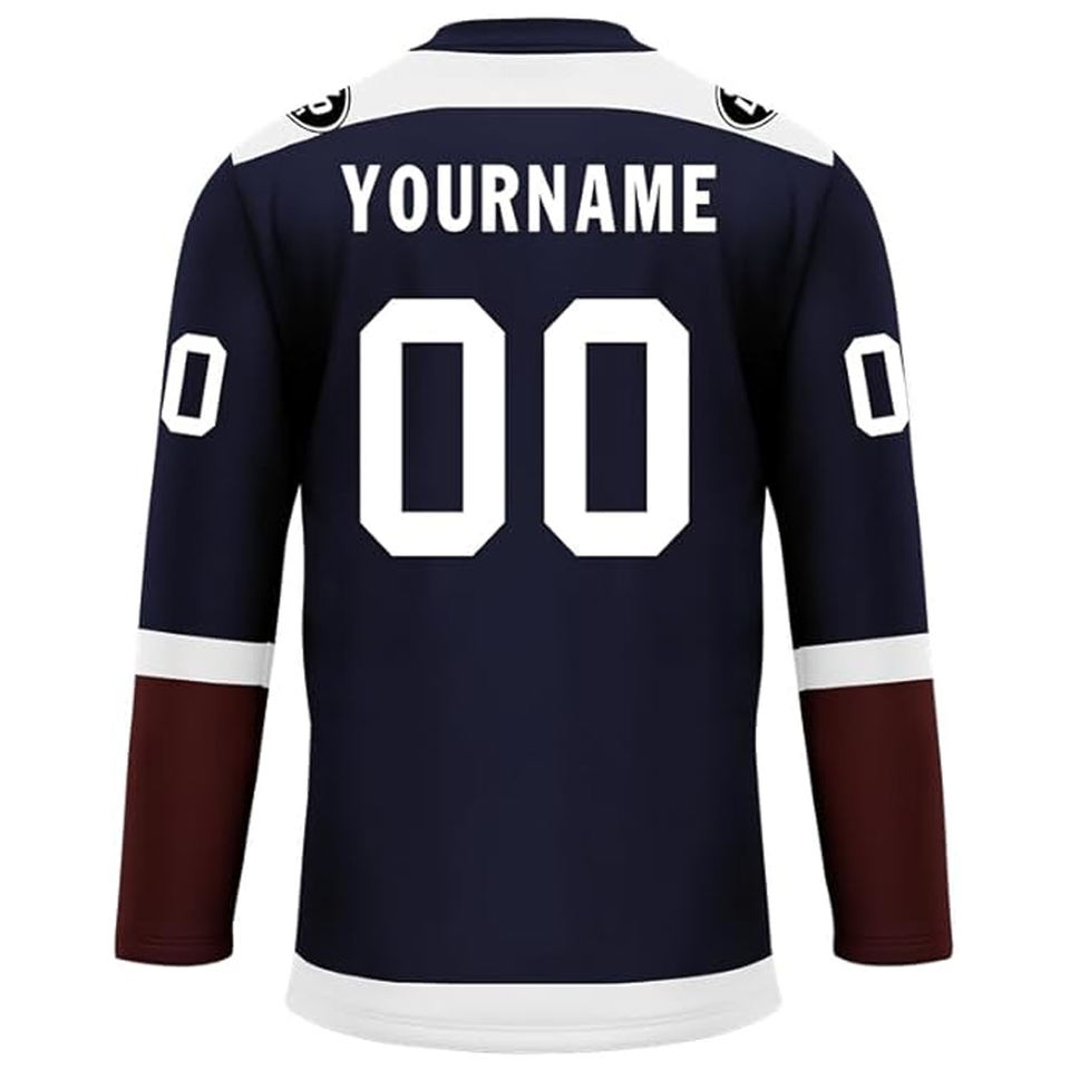 เสื้อฮอกกี้น้ำแข็งทีมแบบกำหนดเอง ผลิตจากโพลีเอสเตอร์ 100% พิมพ์ลายแบบซับลิเมชั่น ปรับแต่งได้ ผู้ผลิตจากปากีสถาน รับผลิตแบบ OEM ขายส่ง ผู้จัดจำหน่ายในสหรัฐอเมริกา