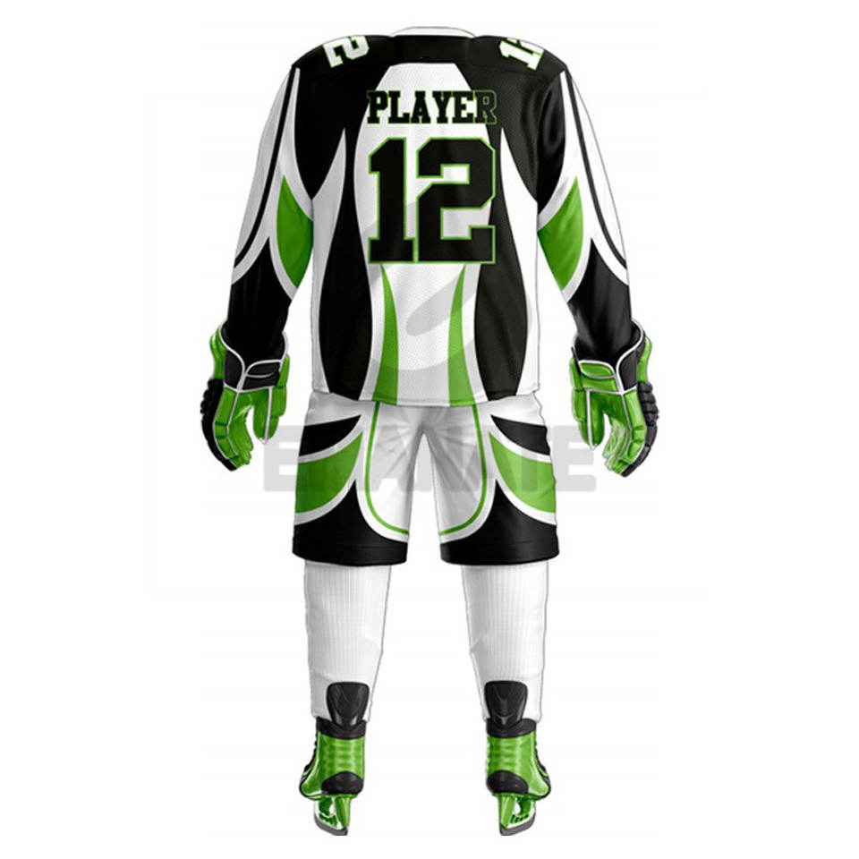 ชุดยูนิฟอร์มฮอกกี้น้ำแข็งแบบกำหนดเอง ชื่อทีมและหมายเลข ผลิตจากผ้าโพลีเอสเตอร์ 100% ระบายอากาศได้ดี แห้งเร็ว ป้องกันแบคทีเรีย พร้อมโลโก้แบบกำหนดเอง เหมาะสำหรับ