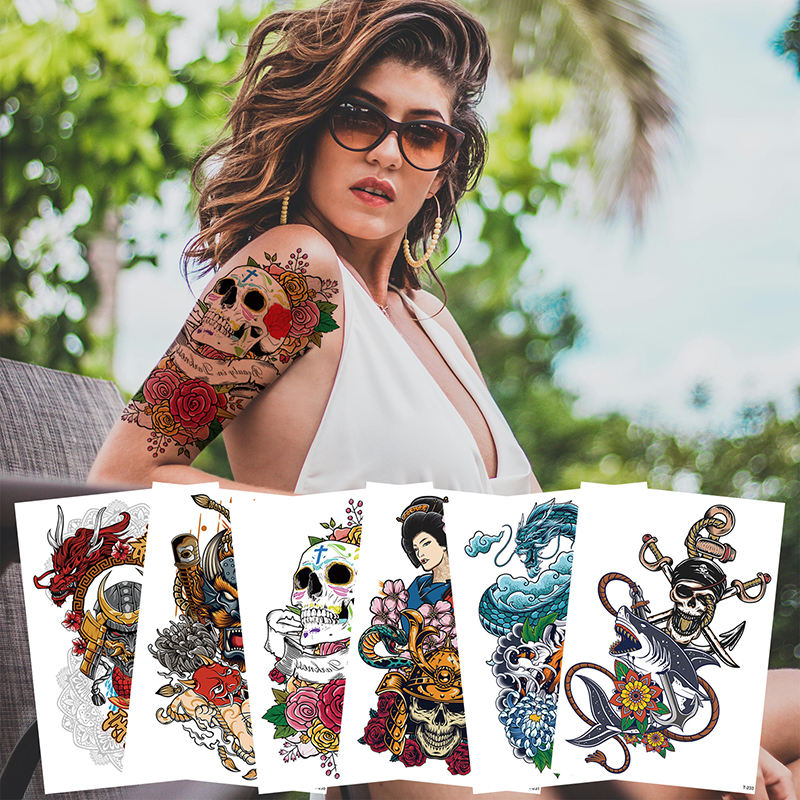 สติกเกอร์รอยสักชั่วคราวที่กำหนดเองกันน้ำสำหรับผู้ชายผู้หญิงรอยสักแขนดอกไม้