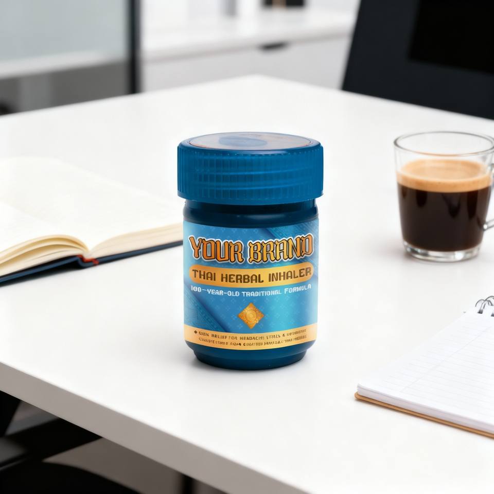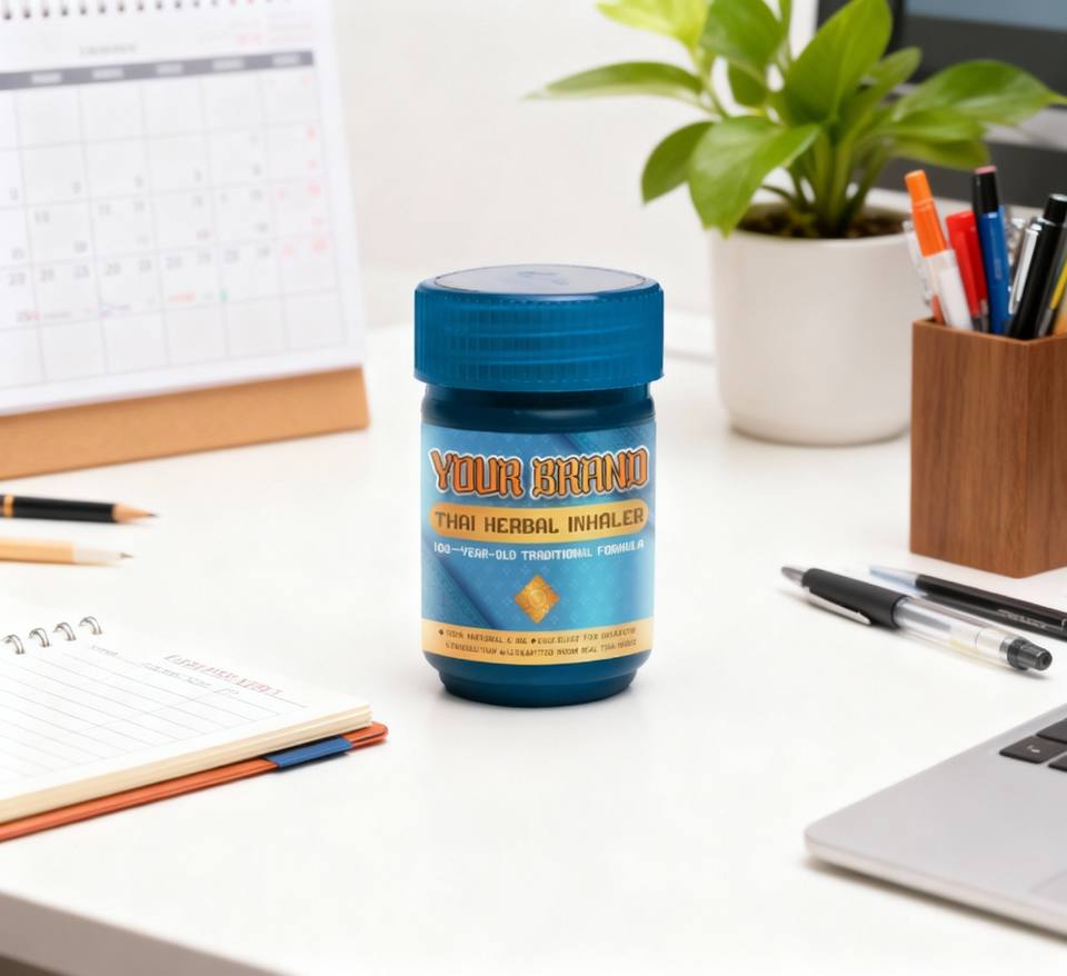 ยาหม่องพลาสติกแบบแห้งชนิดพ่นจมูกสมุนไพรไทยผสมเมนทอลธรรมชาติ ตะไคร้หอม และกัญชาเพื่อการหายใจที่สดชื่น