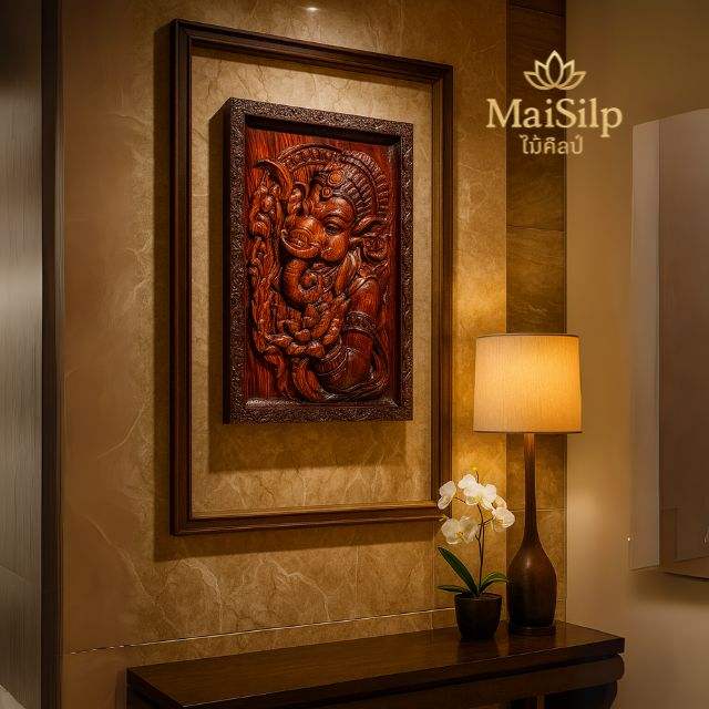 งานแกะสลักไม้ไทยแบบกำหนดเอง รูปปั้นพระพิฆเนศ พระพุทธเจ้า และพระนารา ทำด้วยมือจากไม้พะยูง / ไม้ลายไม้ / ไม้สัก / ไม้พะทะ / ไม้มะค่า