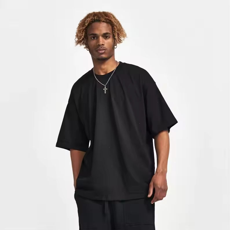 เสื้อยืดโอเวอร์ไซส์สีขาวพิมพ์ลายโลโก้ทรงหลวมไหล่ตกสำหรับผู้ชาย ผ้าคอตตอนหวีอย่างดี 100% แบบหนาพิเศษ ผลิตจำนวนมาก คุณภาพพรีเมียม