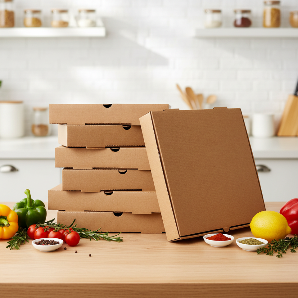 กล่องพิซซ่าแบบใช้แล้วทิ้ง คุณภาพสูง ผลิตจากวัสดุรีไซเคิล ลอนหนาพิเศษ พร้อมหูหิ้ว สำหรับบรรจุภัณฑ์อาหารแบบนำกลับบ้าน