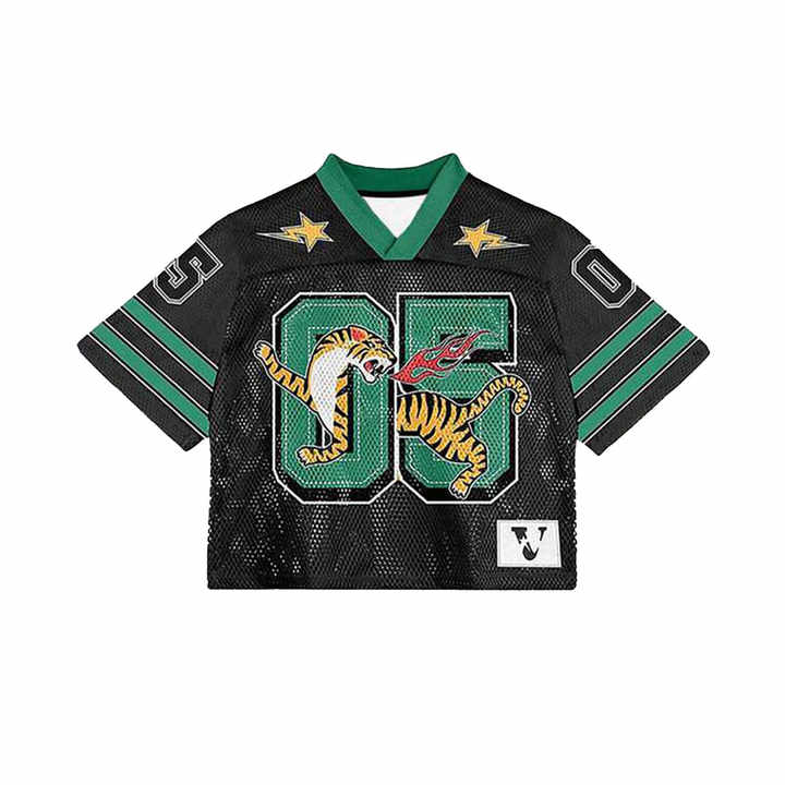 เสื้อเจอร์ซีย์ตาข่ายลายเสือแบบกำหนดเอง สไตล์สตรีทแวร์โอเวอร์ไซส์ ยูนิเซ็กส์ ฮิปฮอป แฟชั่นฤดูร้อน ขายส่ง OEM