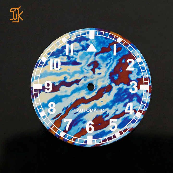 หน้าปัดนาฬิกา Nh35อัลลอยไทเทเนียมดามัสกัสอุปกรณ์เสริมหน้าปัดนาฬิกาอาราบิกขนาด33.6มม.