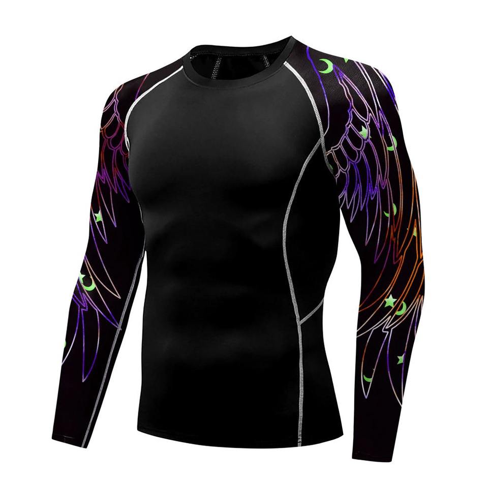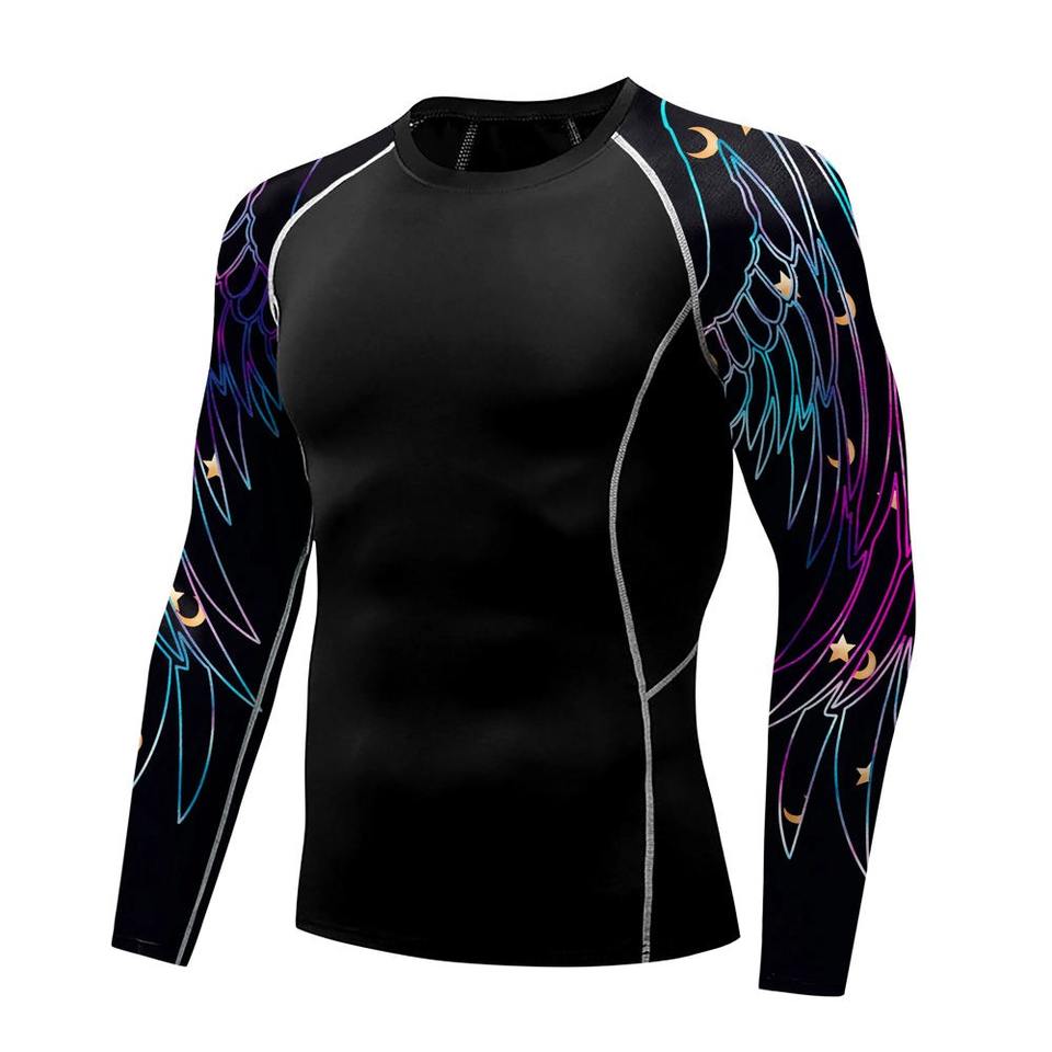 เสื้อรัดกล้ามแขนยาวสำหรับผู้ชาย ดีไซน์พิเศษ ระบายอากาศได้ดี แห้งเร็ว เป็นมิตรต่อสิ่งแวดล้อม ผลิตจากโพลีเอสเตอร์ 100% คุณภาพดีเยี่ยม เหมาะสำหรับกีฬาปล้ำและ MMA