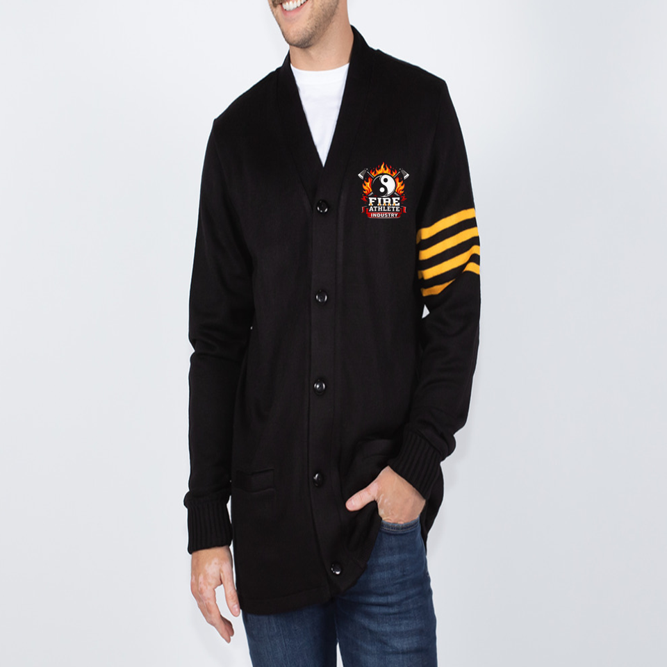 เสื้อคาร์ดิแกนถักปักลายแบบกำหนดเอง ดีไซน์ใหม่สไตล์อเมริกัน ปี 1938 สีดำ/ทอง สำหรับวิทยาลัย