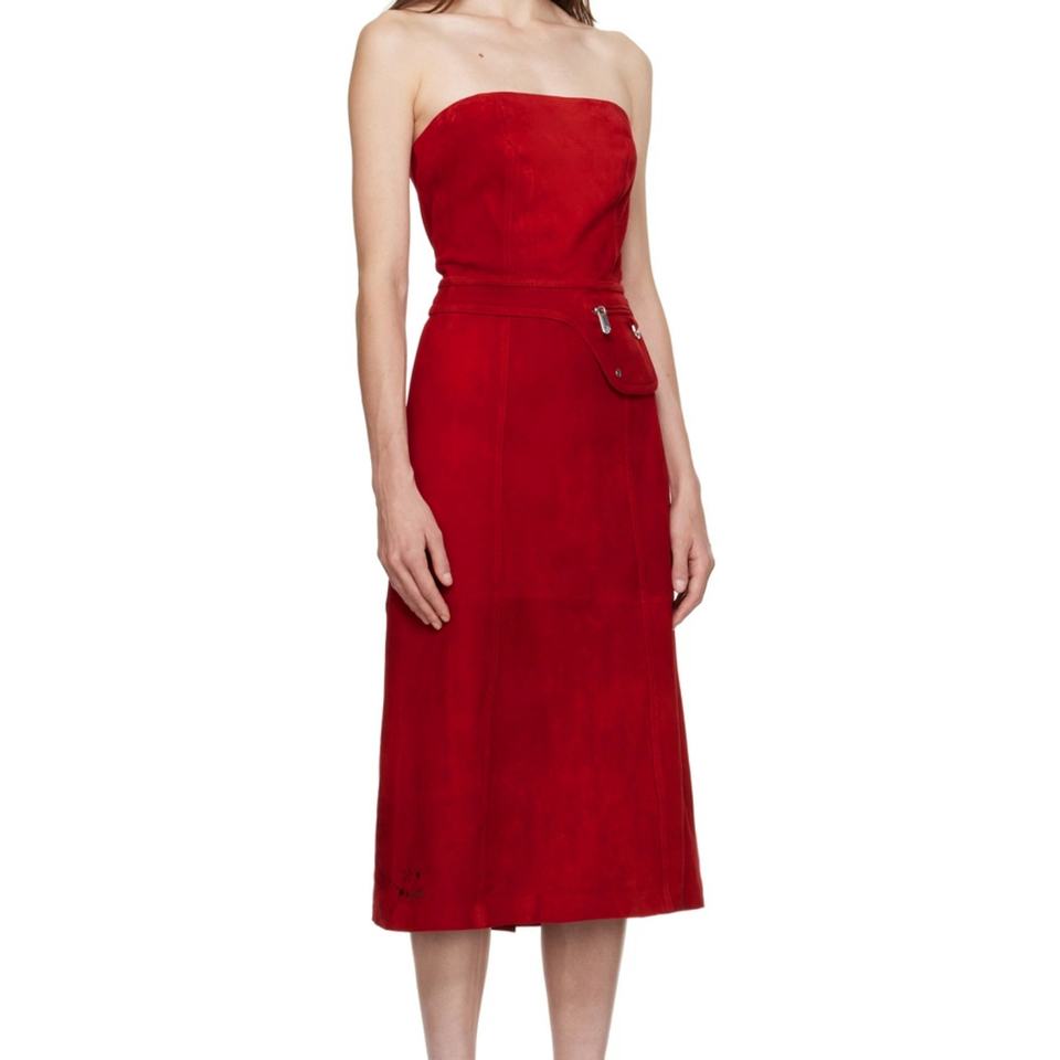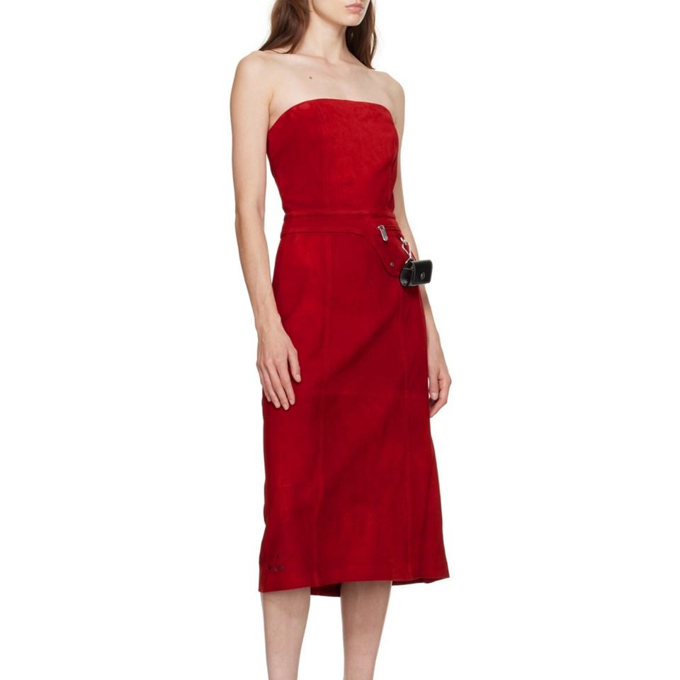 ชุดเดรสหนังผู้หญิงสไตล์โดดเด่นทันสมัยแบบสั่งทำพิเศษ ชุดเดรสหนังรัดรูปเซ็กซี่แบบไม่มีแขน ชุดเดรสหนังยาวปานกลางสำหรับผู้หญิง