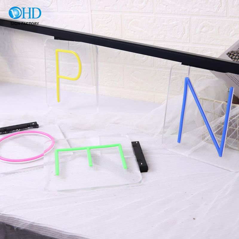 ป้ายไฟนีออนแบบกำหนดเอง ระบบรางเลื่อนปรับได้ ตัวอักษรนีออนเฟล็กซ์แบบ LED สำหรับร้านค้าปลีก บาร์ ร้านเสริมสวย