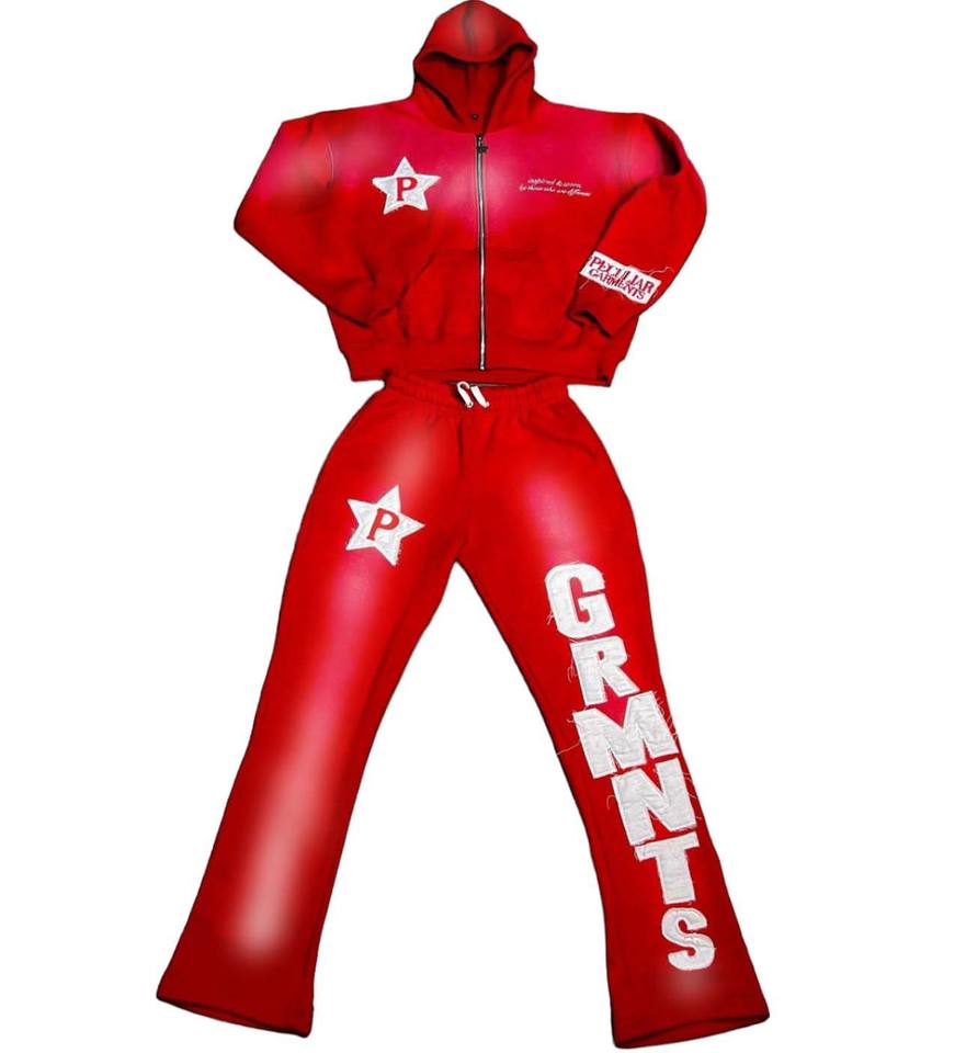 ชุดวอร์มผ้าฝ้าย450gsm ซักด้วยกรดมีฮู้ดผ้าฟลีซเย็บปักแบบรูดซิป