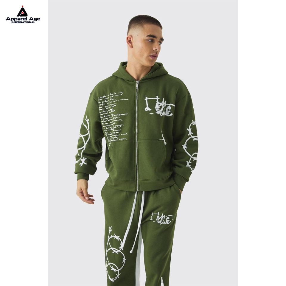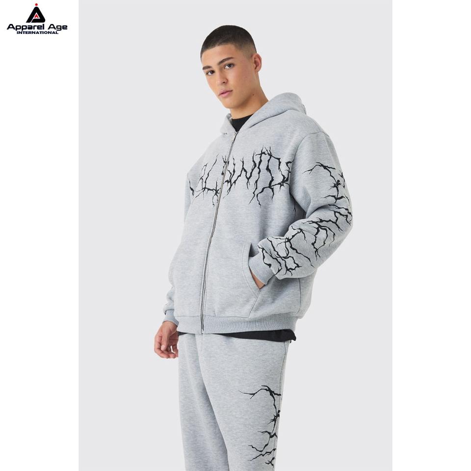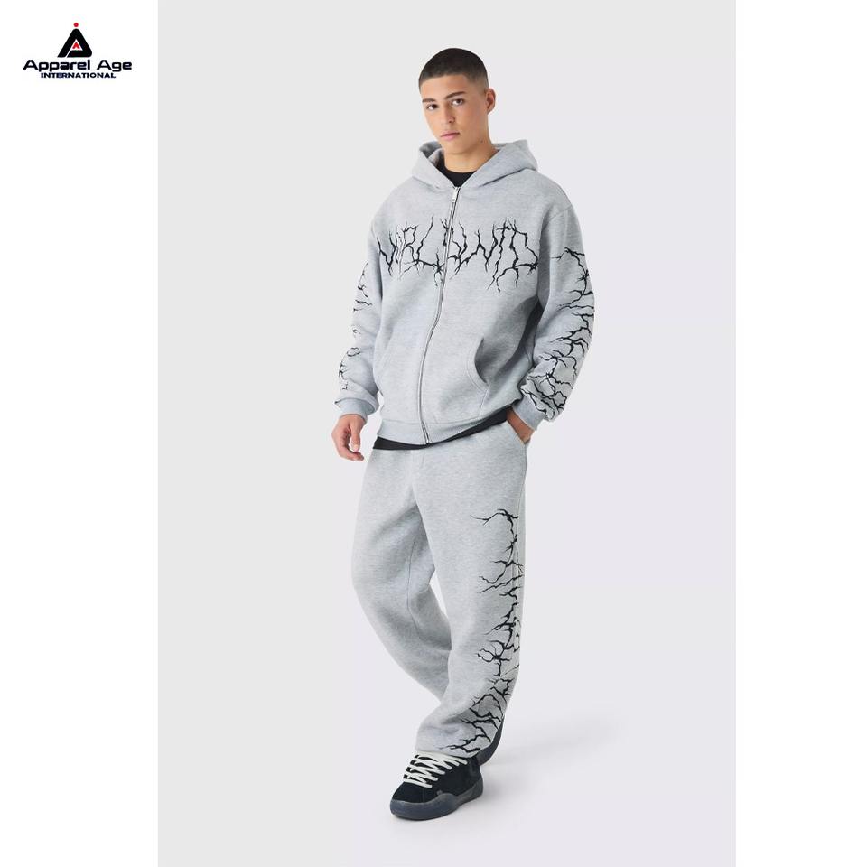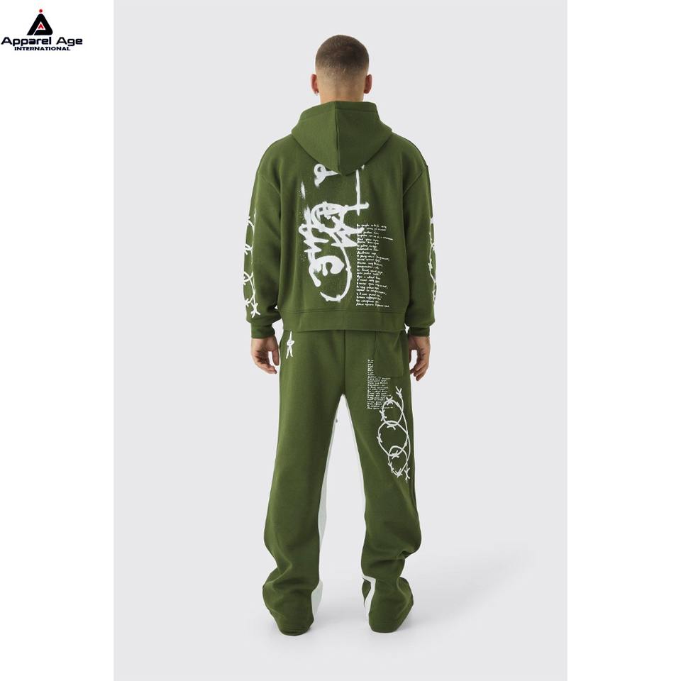 Custom men Jogging Set Zipper Hoodies With Flare Pants