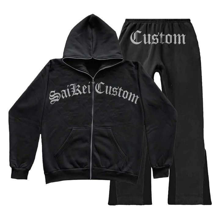 ชุดวอร์มกางเกงผ้าคอตตอนมีฮู้ดสำหรับผู้ชายชุดวอร์มกางเกงวิ่งพร้อมซิปรูดโลโก้คุณภาพสูง
