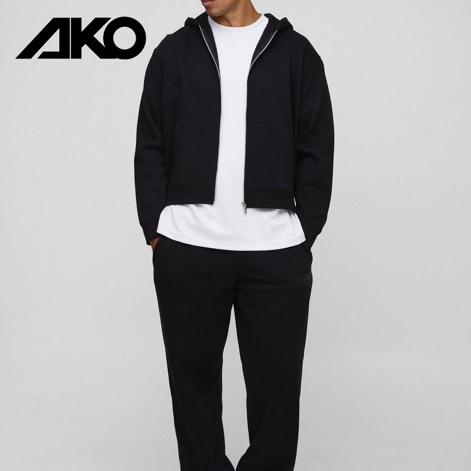 ชุดวอร์มสำหรับผู้ชายผ้าคอตตอนมีฮู้ดและกางเกงขายาวออกแบบได้ตามต้องการ