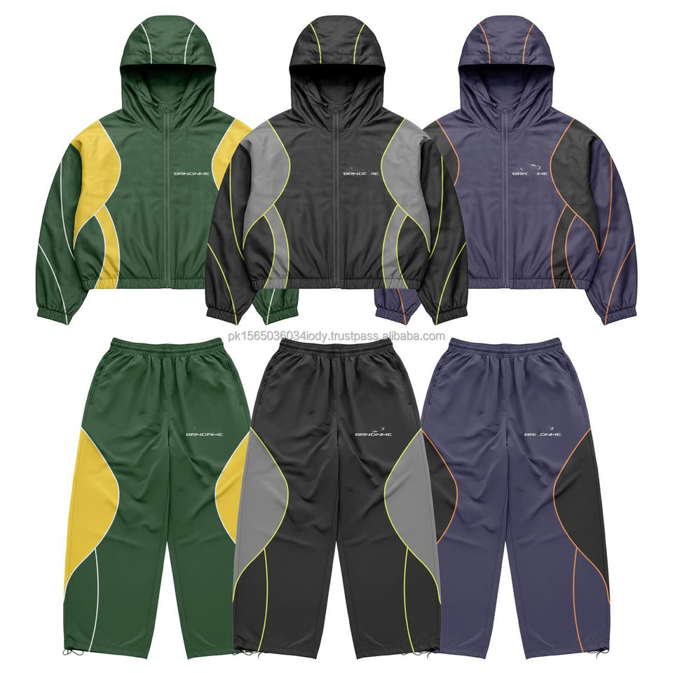 ชุดวอร์มกันลมแบบมีซิปสำหรับผู้ชาย ชุดเซ็ตเสื้อแจ็คเก็ตและกางเกงวอร์ม ผ้าไนลอน สำหรับออกกำลังกาย