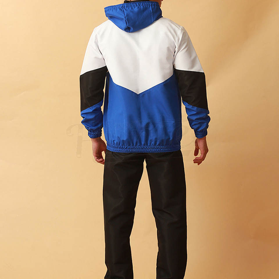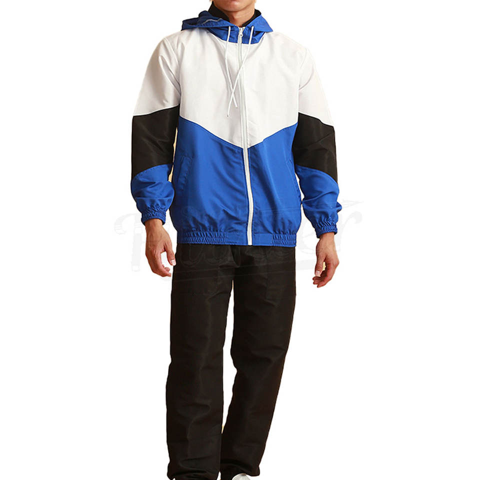 ชุดวิ่งออกกำลังกายสำหรับผู้ชายเสื้อกันลมและกางเกงวอร์มมีซิปรูดโลโก้ออกแบบได้ตามต้องการ