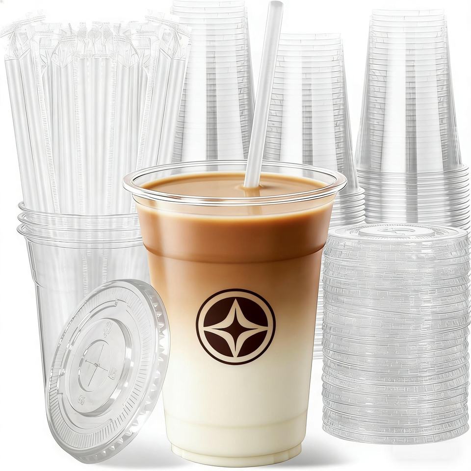 แก้วพลาสติกใสแบบกำหนดเองพร้อมฝาปิด ขนาด 16 ออนซ์ แก้ว PET ใสแบบใช้แล้วทิ้ง สำหรับชาเขียวมัทฉะ ชานมไข่มุก โซดา กาแฟเย็น พร้อมพิมพ์โลโก้