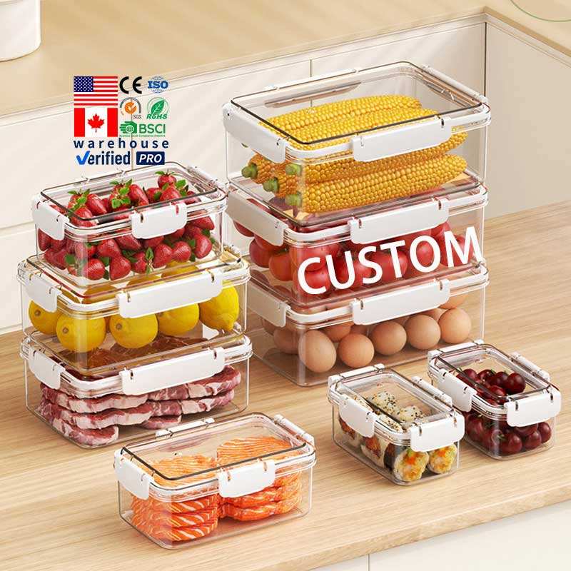 กล่องเก็บอาหารพลาสติกใสแบบกำหนดเอง เกรดสำหรับอาหาร ใช้ในครัว ตู้เย็น สำหรับจัดเก็บผลไม้ ผัก และอาหาร