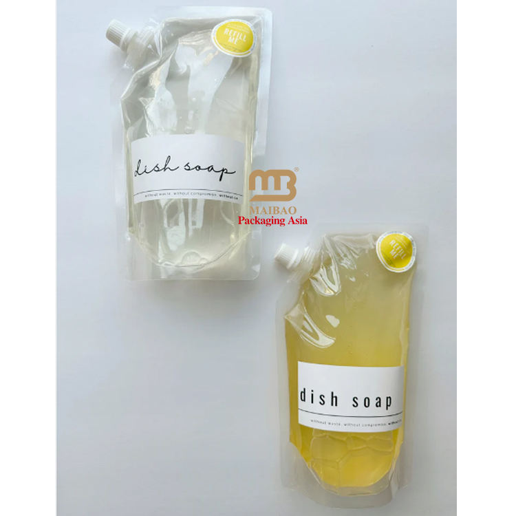 ถุงบรรจุภัณฑ์แบบตั้งได้ใสพิเศษพร้อมจุกสำหรับบรรจุผงซักฟอก สบู่ โปรตีนชนิดผง และของเหลว