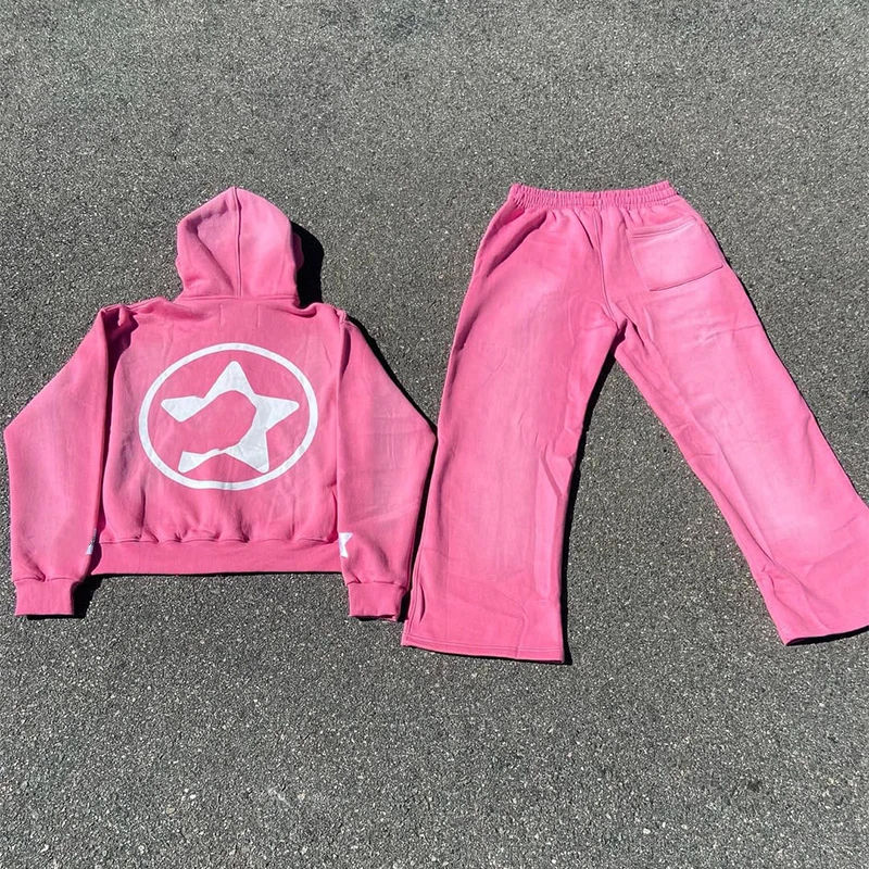 ชุดเซ็ตแทรคสูทลำลองแฟชั่นฤดูหนาว สีพื้น ทรงขาบาน สไตล์ซันเฟด พร้อมฮู้ดดี้มีเชือกผูก ผ้าฝ้ายฟลีซ สตรีทแวร์